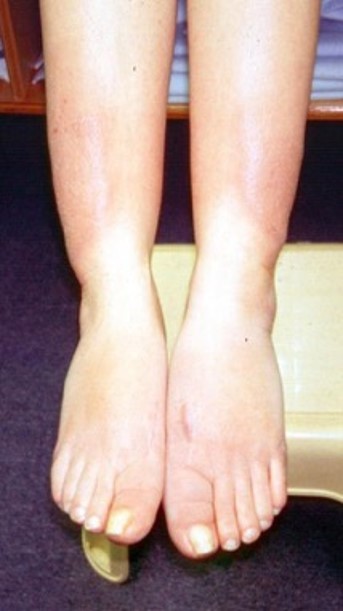 Notice the symmetrical pretibial myxedema