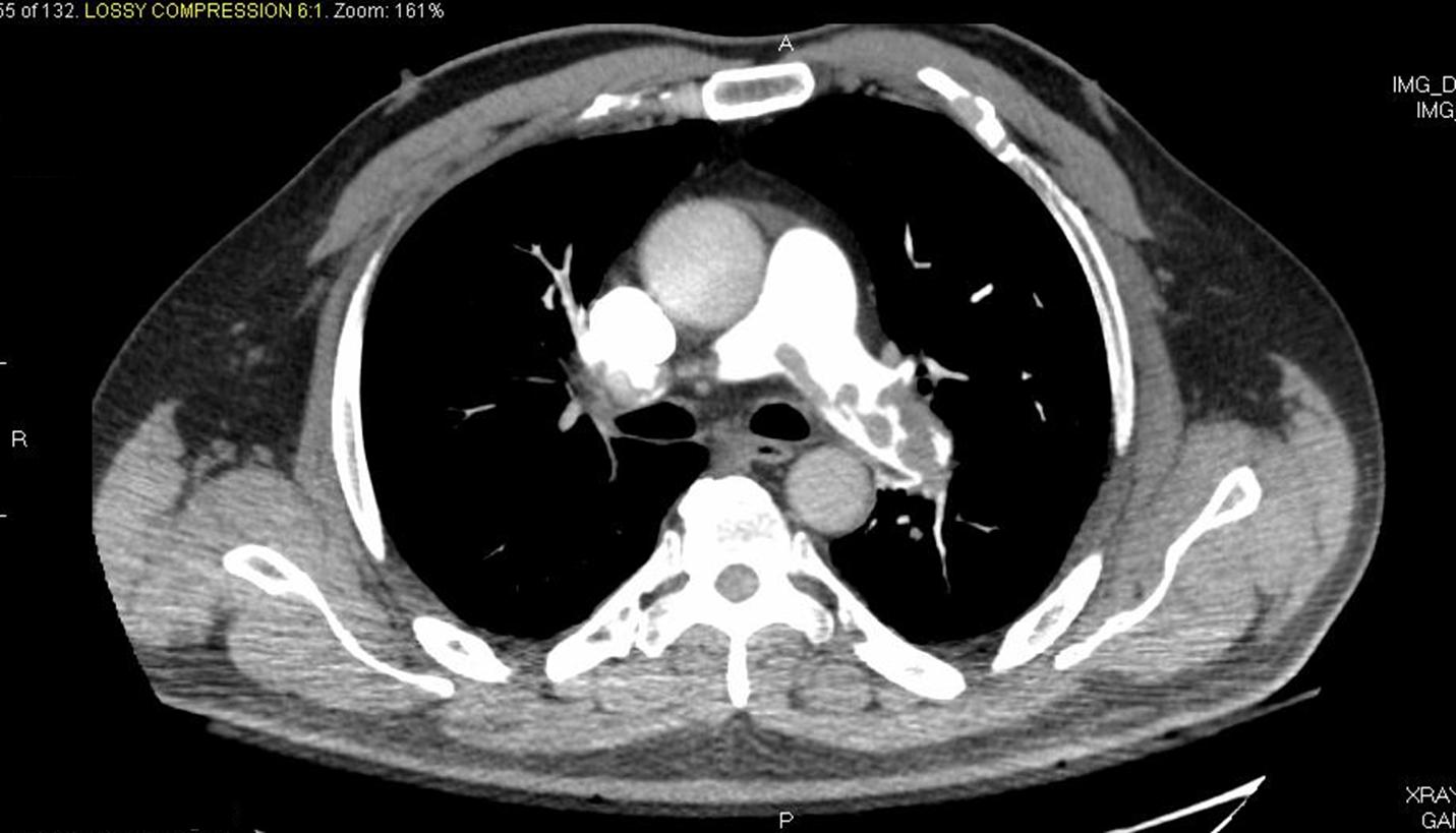 Bilateral proximal patchy PE as seen with CT
